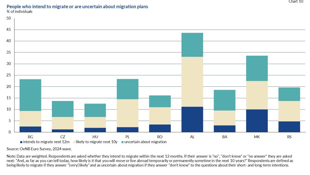 Anketa e Bankës Qendrore të Austrisë në fund të vitit 2024 vuri në dukje se gjysma e atyre që ishin rikthyer në Shqipëri donin të largoheshin sërish. 30 për qind e tyre që morën pjesë në anketë kishin jetuar jashtë vendit më parë, por gjysma e tyre rreth 50% duan të largohen sërish, pasi po përjetojnë zhgënjim.