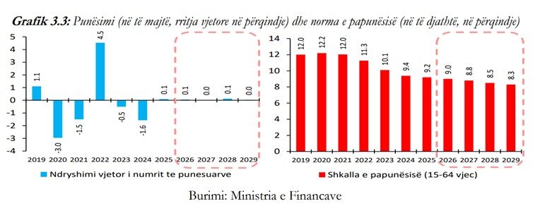 Ministria e Financave paralajmëron se me më pak punëtorë në dispozicion, rritja ekonomike mund të ngadalësohet, duke ndikuar në prodhim, investime dhe konkurrueshmëri. Të dhënat e fundit tregojnë se gjatë nëntëmujorit të vitit 2025, shkalla e pjesëmarrjes në forcat e punës arriti 76.5%, ndërsa shkalla e punësimit 69.4%, një rritje modeste krahasuar me vitin e kaluar.
